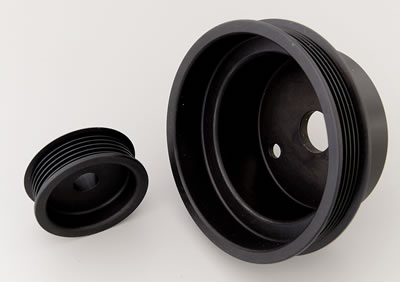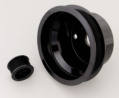 In short, if you install a smaller crank pulley, be sure to install a smaller alternator pulley.