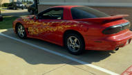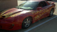 So I'm looking for some feedback and suggestions on the exterior. The airbrush job of flames and lightning bolts wasn't my choice ($4k for the airbrushing). I bought it like that from a guy's ex for 5k. The airbrush work is not finished and the car is not clear coated. It only has mid-clear to preserve what's done. The original intent was to have a firehawk airbrushed onto the hood with the lightning bolts coming out of the wings. Eventually, I'd like to get something on the hood any thoughts?