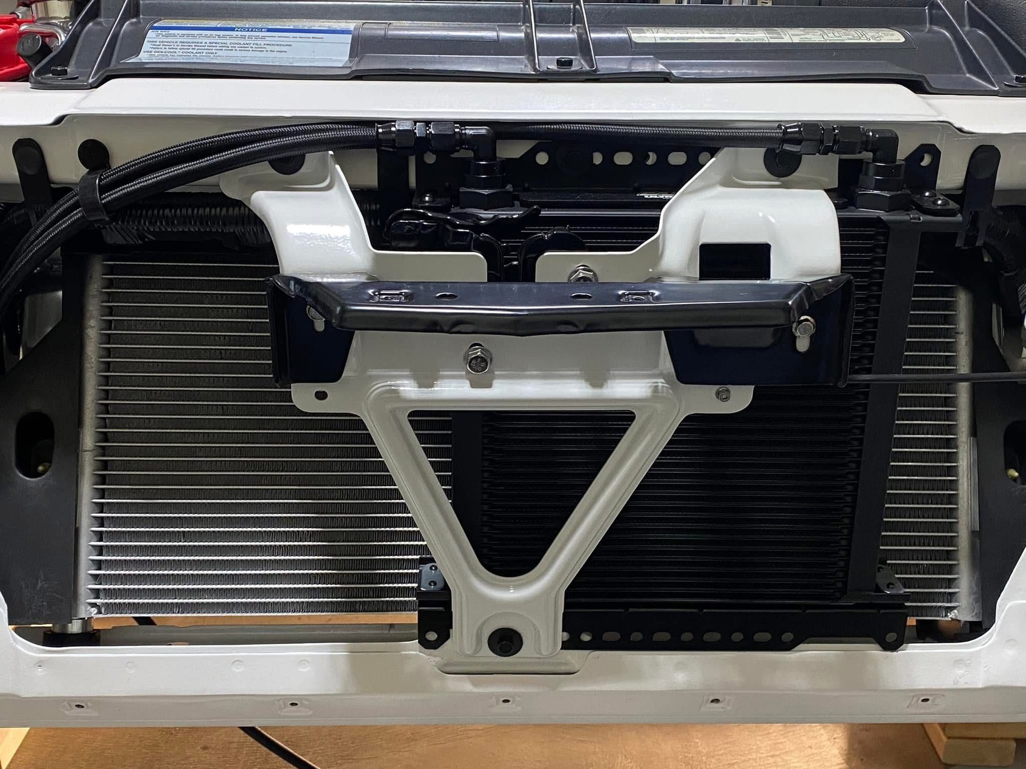 Well, I’m still at it! Slow but sure. Went several different directions than what I originally had planned. Have a BMR upper/lower A Arms, Meziere electric water pump to install in the water pump housing, a Dewitt’s 2 row aluminum radiator, new AC Condenser and last but not least an Earls Performance external trans cooler.