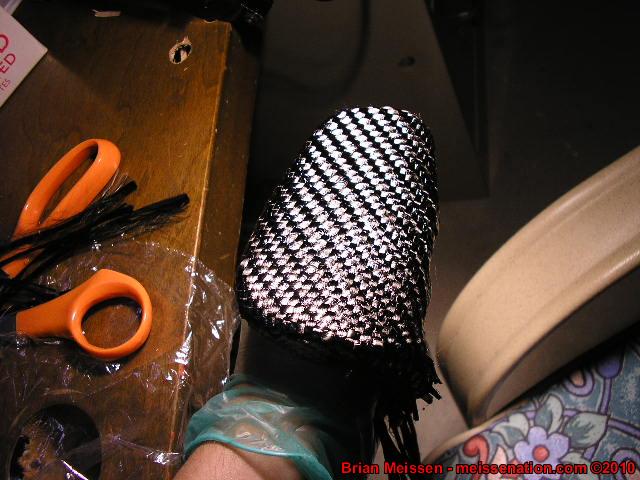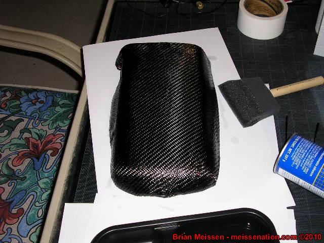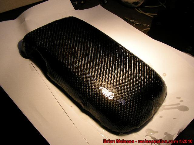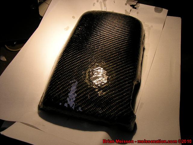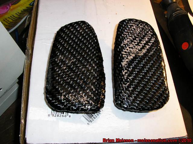 haha well it's carbon fiber twill, I actually purchased all materials off ebay... carbon fiber twill 50" by 48" and then also a gallon of clear laminating resin (w/ hardener). You take the piece you want to cover, sand it down to scuff it up, spray some spray adhesive onto the piece, let the adhesive get tacky, lay the carbon fiber onto the piece (giving a good 2-3 inches extra on each side, so you can grip it and wrap it and what not), let the glue dry a little, make up some resin, put the resin on so the resin soaks through the carbon fiber and into the plastic... let the first layer dry, then do another layer, let dry, another layer, wet sand (I purchased 1000, 1500, and 2000) progressively from 1000 grit to about 2000 grit, and then paint with clear coat automotive paint. I'm on the final layer of the resin stage, and then I have to sand and install.