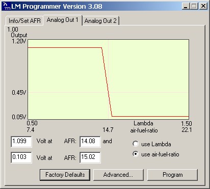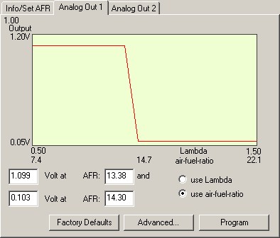 Basically these allow you to replace your stock narrow band O2s with the widebands. They will output an analog "narrow band simulation" to the PCM. But the output is programmable. This is the factory default of the first analog output: