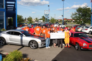 Eastern Michigan Camaro Club, sponsored by Bill Crispin Chevrolet Saline, MI presented a check to Ronald McDonald House for $3650 on Monday, Aug 22, 2011 6pm at Bill Crispin Chevrolet. This donation was raised at the 20th annual all Camaro event – Camaro Superfest. CAMARO SUPERFEST is hosted by EMCC every summer. This year 309 Camaros from 12 states/Canada attended. Spectator admissions, raffles and silent auctions were used to raise the $3650. A different charity is chosen each year. RMcDH was chosen in honor of Doug Warren, a great friend and President/Founder of the Western Michigan Camaro Club in Grand Rapids, who passed away before Christmas. Presenting the check (L to R) - Barry Hensel, EMCC VP and CSF show chairman; Randy Martin, EMCC President; Shannon Novara, RMcDH representive; BIll Crispin, owner Bill Crispin Chevrolet and Ronald McDonald. All others in photo are EMCC members. PDF file/photo is of the EMCC members Camaro's that attended the check presentation. PLEASE pass this along!! Thanks Barry Hensel EMCC VP Attachment 11765 Chris/Jason... I think this should wrap-up our 2011 event item here. Please leave it posted, but replies can be blocked out. Thanks, Barry |