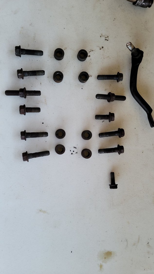 Fortunately none of the manifold bolts to the heads broke, and only one on the passenger side was kinda loose. I need to find appropriate ARP bolts to replace them, as only one stud is actually used for the alternator bracket.