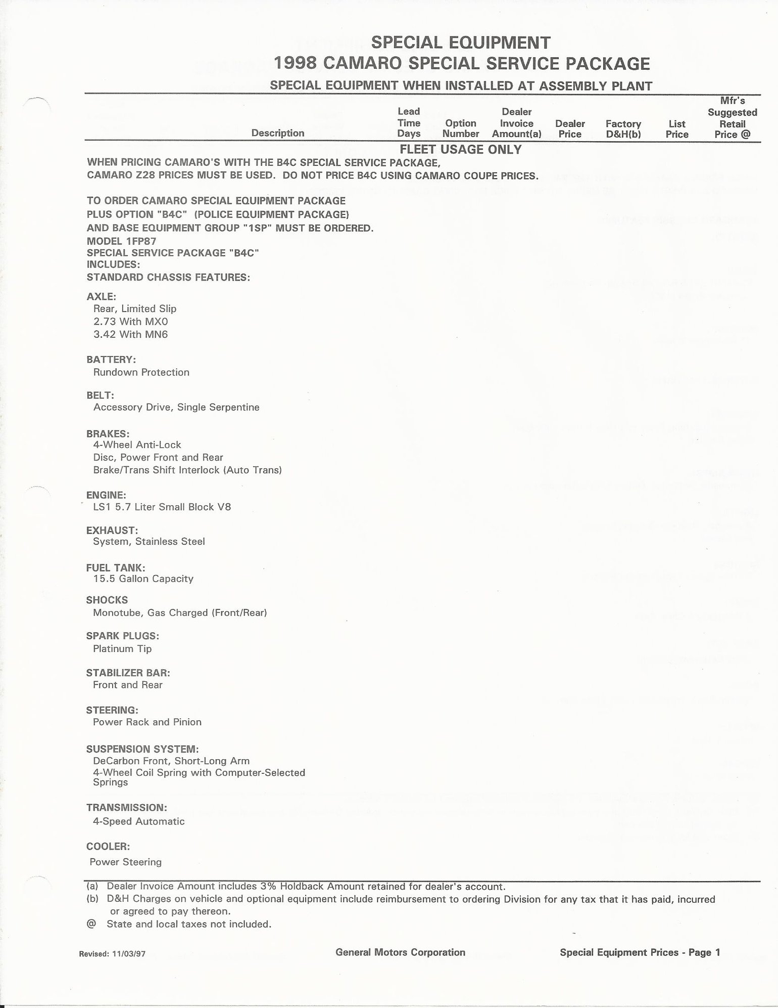 I have the 2002 SS order sheets from SLP and there is no mention of B4C.