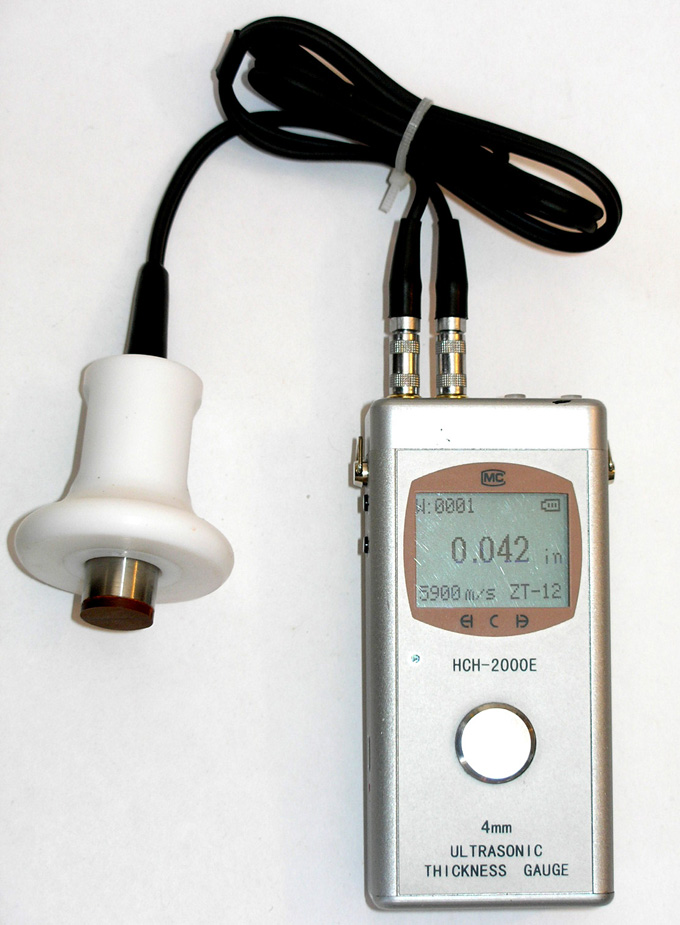 They take one of these and check the thickness of the metal,kinda like sonar.