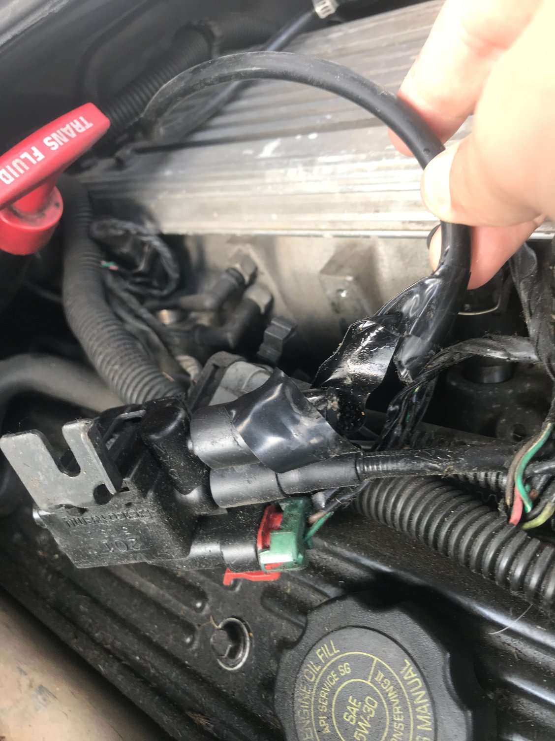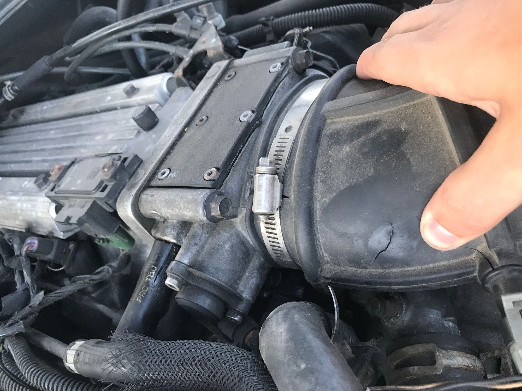 The torn inlet elbow needs to be replaced, but it isn’t causing the engine to die.