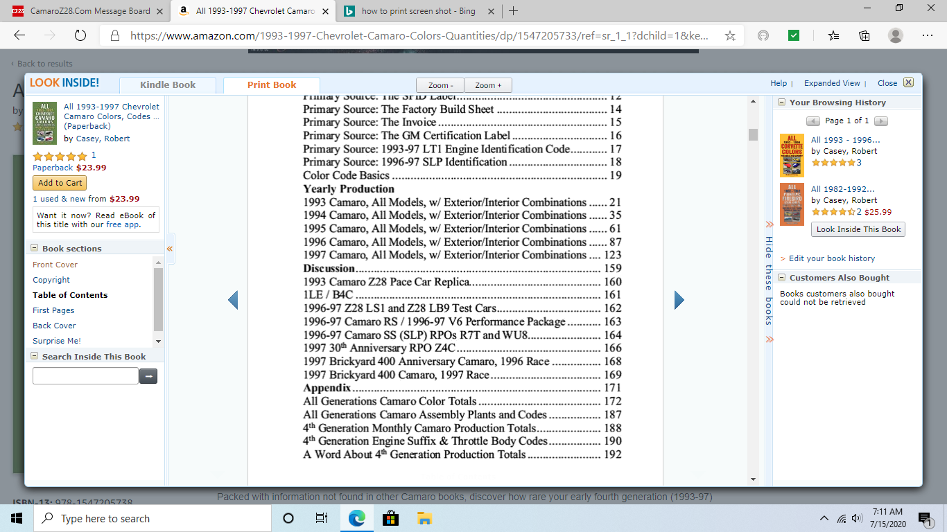 The screenshot below shows the index of the book which list a chapter on 96-97 Z28 LS1 and Z28 LB9 Test Cars. This information is supposed to have come from the CompNine website using the RPO data bank. Here's if anyone is interested.