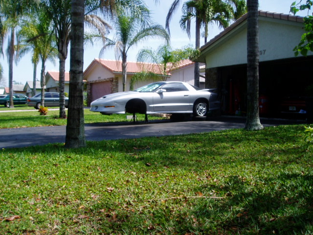 I also used a cherry picker to pick up the front of my T/A when I pulled the engine. Works out great. I put a dolly under the engine and after I raise the body, I just roll out the engine and trans. Takes me about 2 hours to unhook the components and get the engine out. I have done both and it is so much easier to work on the engine/Trans out of the car then trying to bolt up all the crap under the damn cowl in the car. Not to mention the cramps in the back and legs from being bent over the fender.