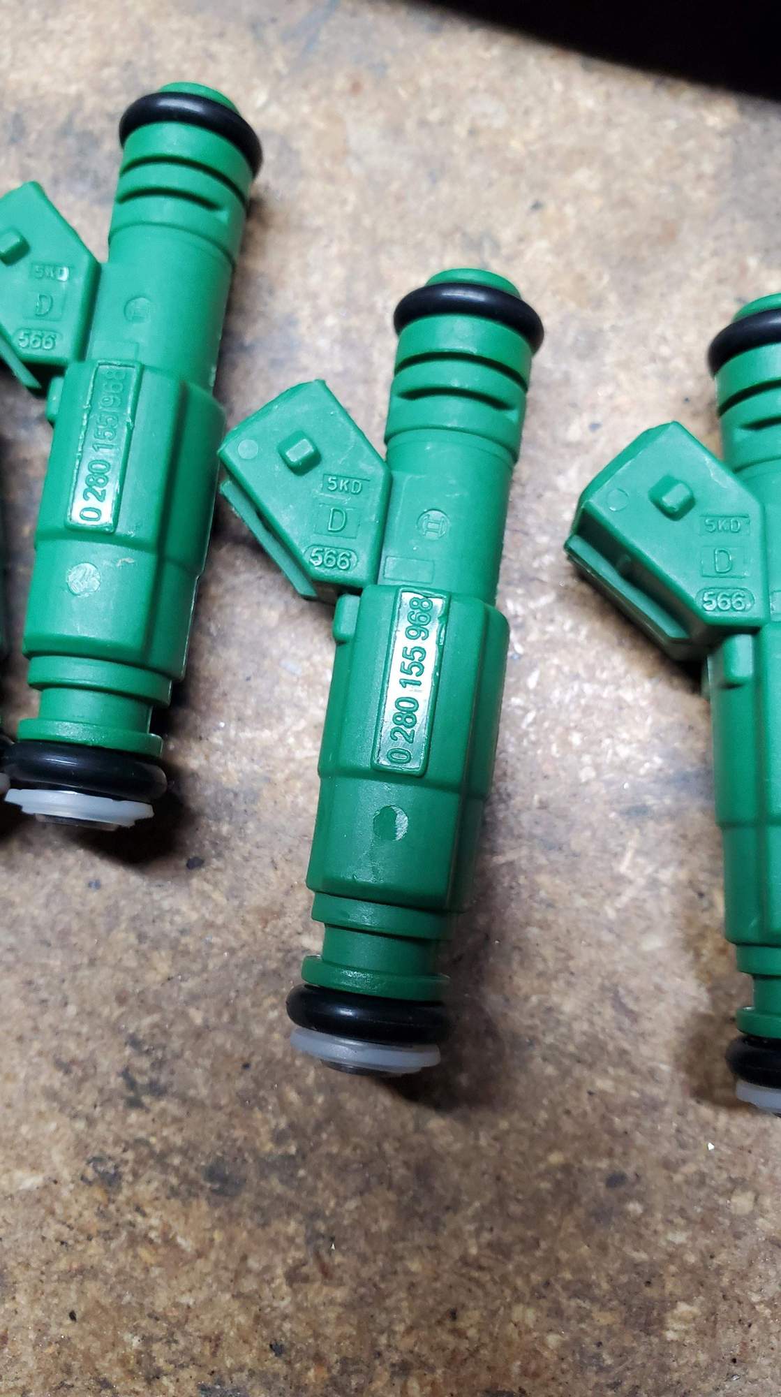 I would not run those. EVEN IF they are 42lb injectors most of the late model ones are set up for multi-valve engines. These are the Ford/Bosch 42lb injectors to use.