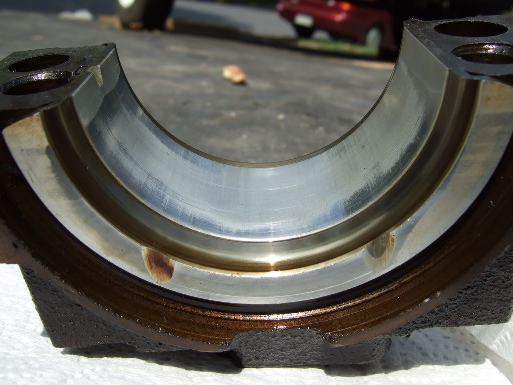 Well I pulled the rear main cap and here is what the bearing looked like: