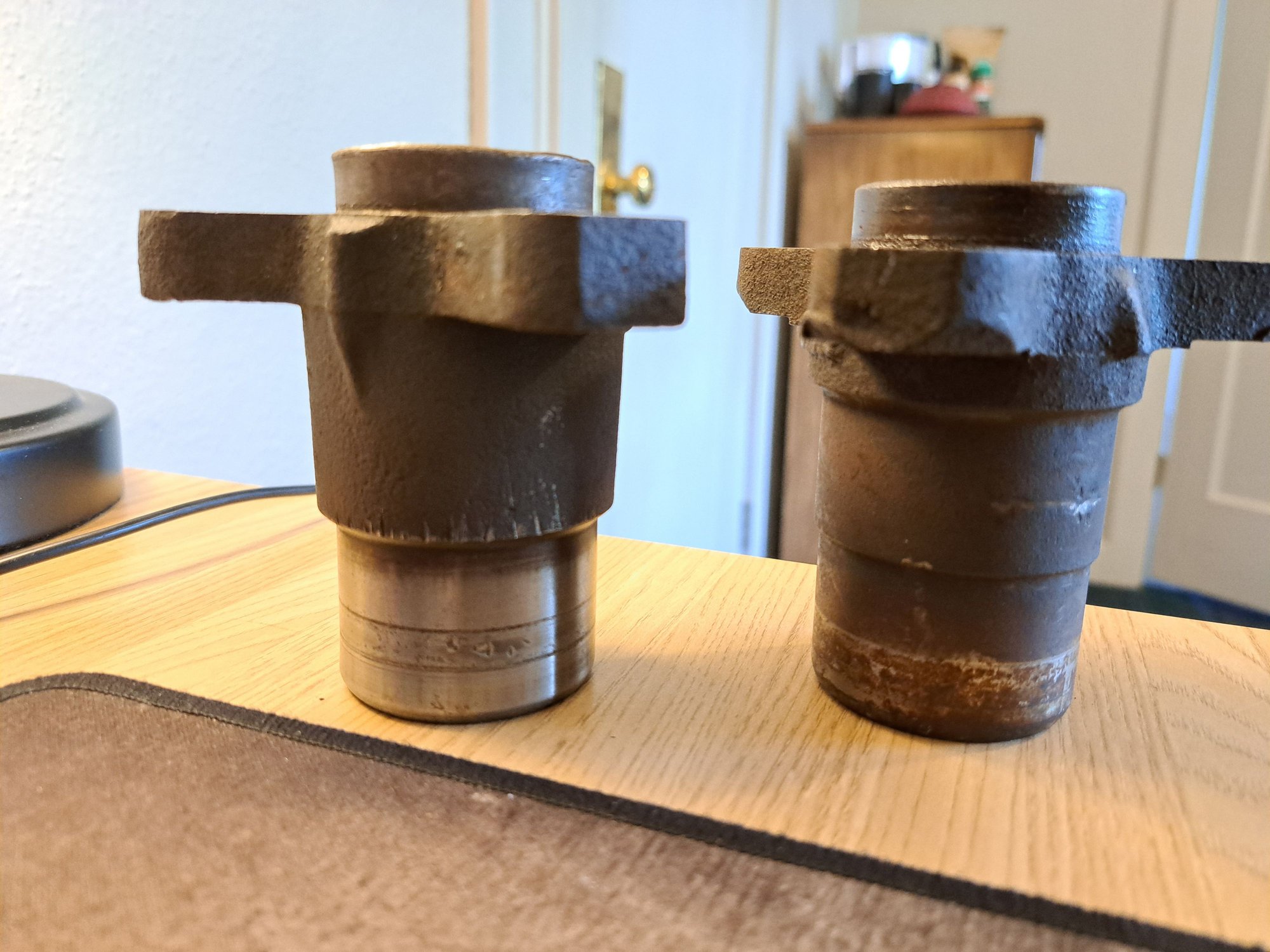 Removing the hub Removed hub on the left, previously referenced "old" hub on the right Another view of the hubs Height difference more apparent