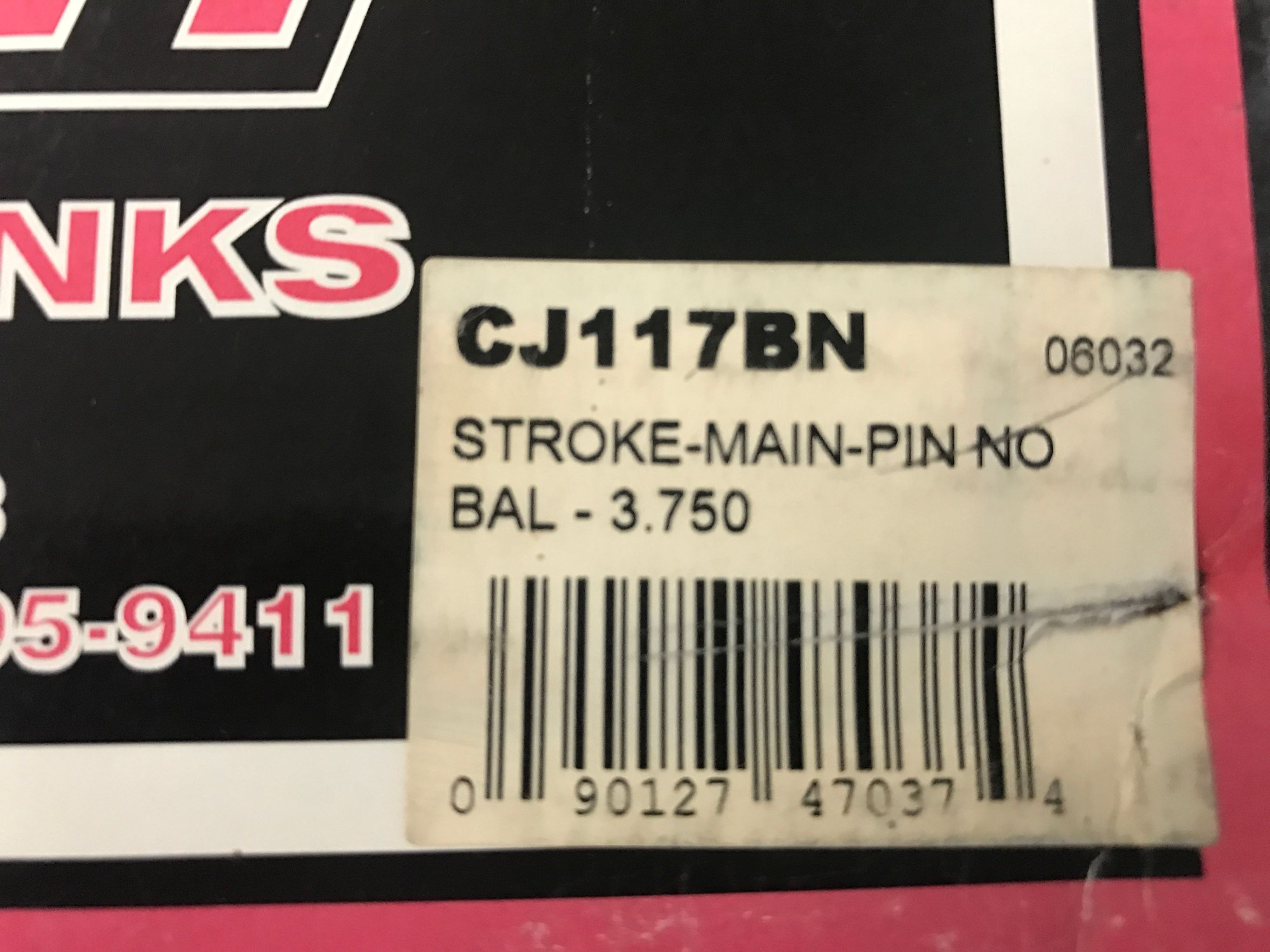 -Part Number= CJ117BN -3.750 Stroke with 350 Mains -2.448 Main Diameter -2.100 Pin Diameter (rod journal) -1-Piece Seal -Internal Balance -Forged 4340 Steel -3.750 in. Stroke -Rod Journals 1 & 4 are factory lightened by Lunati